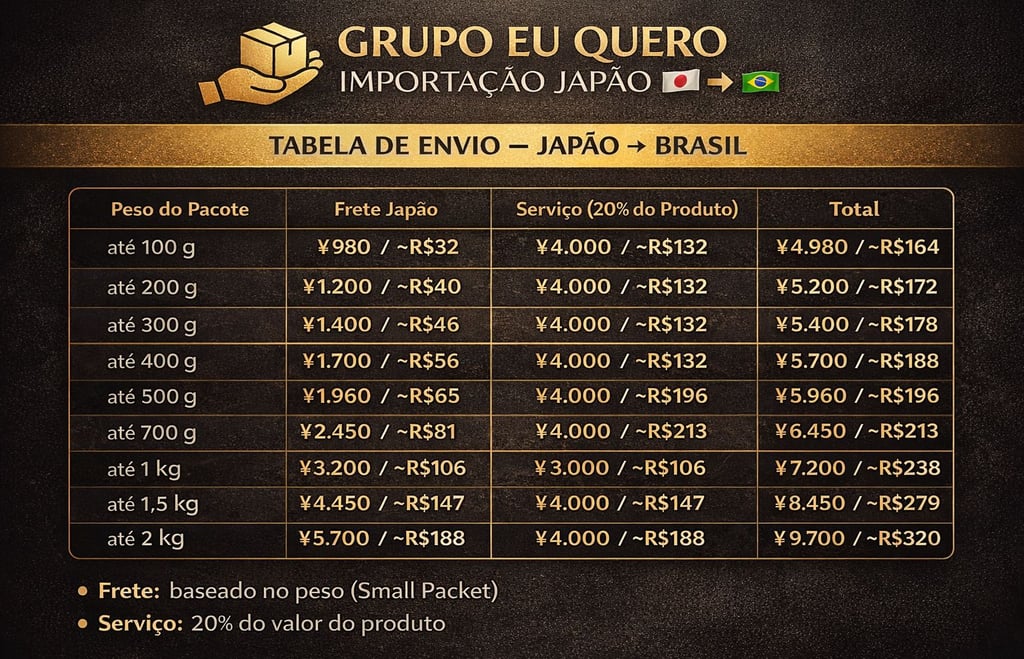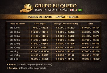 Depois que recebemos o produto no Japão, realizamos o envio para o Brasil via EMS ou Small Packet, com código de rastreio.